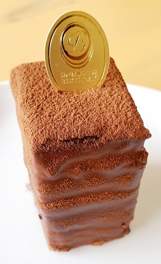 バースディのナンバー1ケーキ。ベルギーチョコ使用の12層チョコレートケーキ! 重なり合う美味しさに感動です。